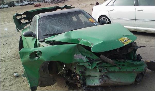 This weeks wreck is a proper track car. An awesome Porsche GT3 RS. Unfortunately the end of this baby came earlier than expected. Driver was clipped by another car while cruising at over 240km/h. This resulted in the car hitting the median, then a light pole, then a palm tree and 6 other cars before coming to rest against a traffic light. That must have been rather spectacular to see. Due to the car being fully equipped for the track, the driver did not have a scratch thanks to the solid roll cage that you will find in the GT3 RS.