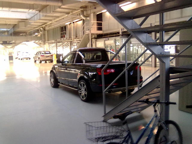 A while back I shared the single photo floating around of the thought to be photo-shopped Q7 Pickup Truck. Well there have been more images which have surfaced and have confirmed that it is in fact very real. Seems to be sitting inside some garage somewhere in the world.