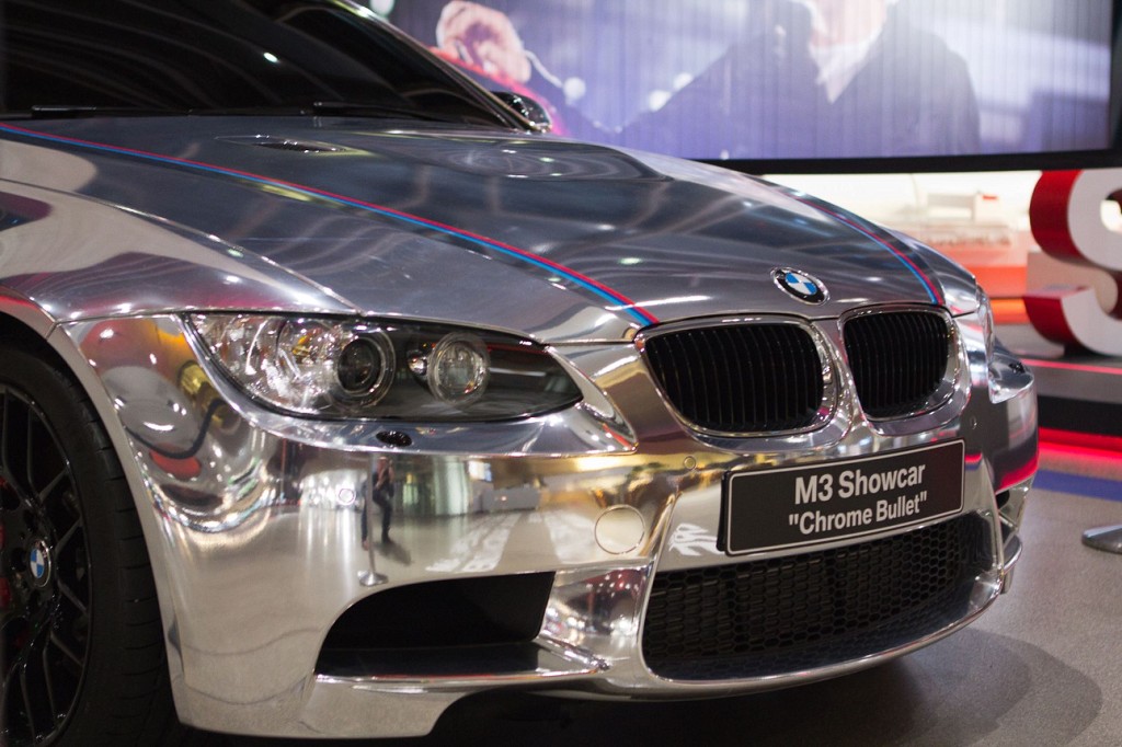 Share Facebook Email Twitter LinkedIn WhatsApp Telegram A BMW M3 all chromed out? You would think it looks a bit ridiculous but wow does this machine look awesome! This is possibly the coolest M3 ever! They even put the classic BMW racing stripes on the hood… Good work BMW!