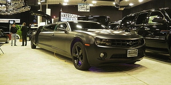Every now and then you get a very standard car being transformed into a seriously ridiculous looking limo. Well here it has happened again. A matte black Camaro stretch limo is for sale on eBay. Strangely enough, the car is RWD which is about the only positive. Everything else looks cheap and homemade (it probably is). Good luck to the buyer and all the mad people bidding on it.