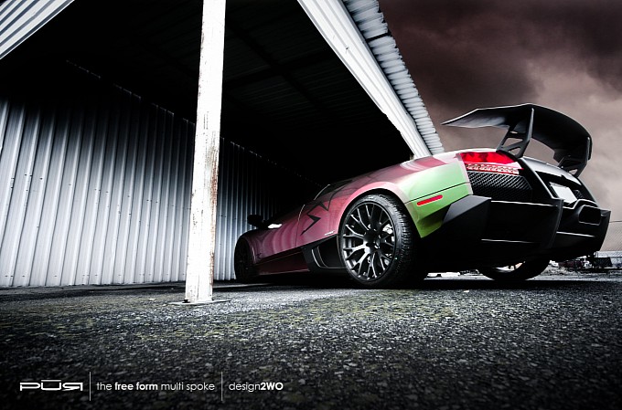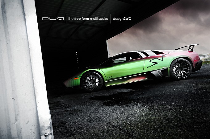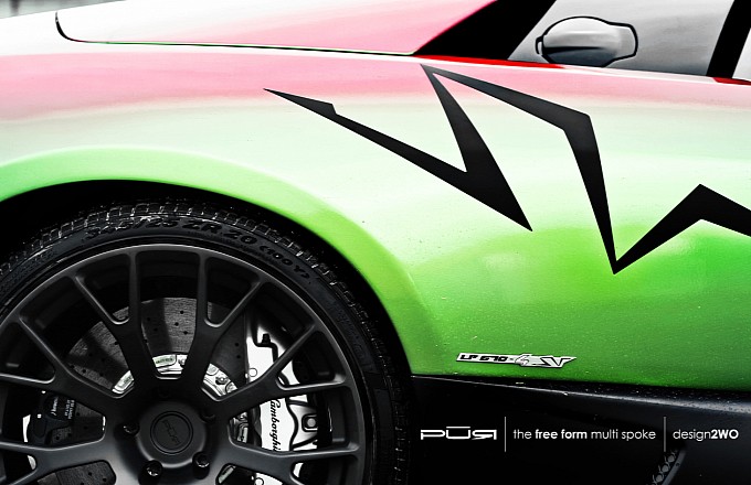 Some new pictures have been released of a Lambo Murcielago LP670-4 SV riding on some new PUR wheels. For me this is not quite as noticeable as the fancy exterior paintwork job. Dont get me wrong, I think the wheels look great but they are overshadowed by what looks like a car covered in candy.