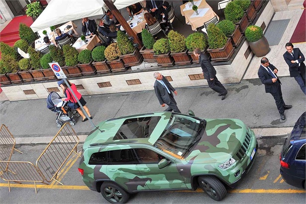 So it seems the manager of brand promotions at Fiat, Lapo Elkann, has some sort of addiction to camouflage and ultimately overkill. He has been seen around driving a Jeep in full camo gear and now the ultimate sacrifice has been performed. He has FULLY transformed the most beautiful Ferrari to date into a complete joke! Exterior and interior both kitted out to the extreme (even the engine bay). What are your thoughts?