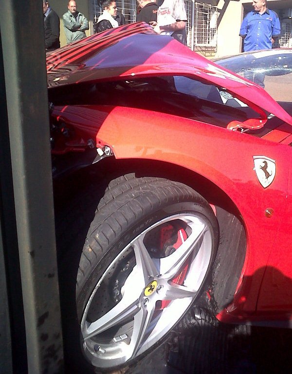 This week features a Ferrari we all love so much the 458 Italia. This particular accident happened in South Africa, Boksburg. Sorry for only the one picture but you can see the damage is extensive… Driver was angry and not paying attention which resulted in him going through a fence and into a pole… Bruised ego once again!