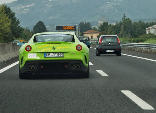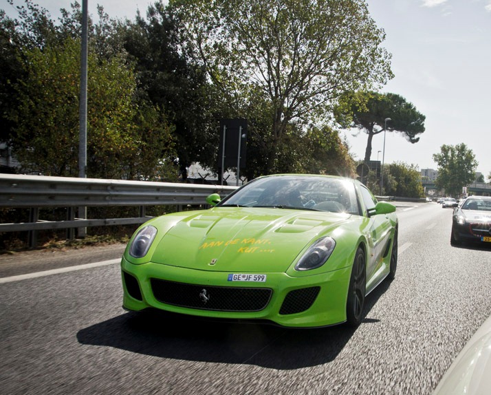 I am a massive fan of the 599 GTO and most of my passion for the car stems from the insane exhaust note it spits out. Well here it is combined with my favourite colour! This thing looks too cool! I know its not a traditional colour on a GTO nevermind a Ferrari but this car is made to stand out and now this owner made sure of that! This particular car was spotted taking part in The Challenge 2012.