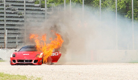 Share Facebook Email Twitter LinkedIn WhatsApp Telegram Caught fire at Monza at one of the recent track days. Must be one horrible sight to see your baby burning like this…