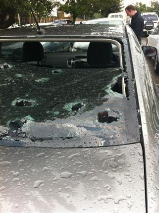 A hail storm in Edenvale in Gauteng on the 20th has left many cars with smashed windscreens, windows and  damaged bodywork. The size of the hail stones is bigger than anything I have ever seen in my life and could quite possibly kill a person if they were hit on the head. This was a SERIOUS storm… Click read more for more pictures!