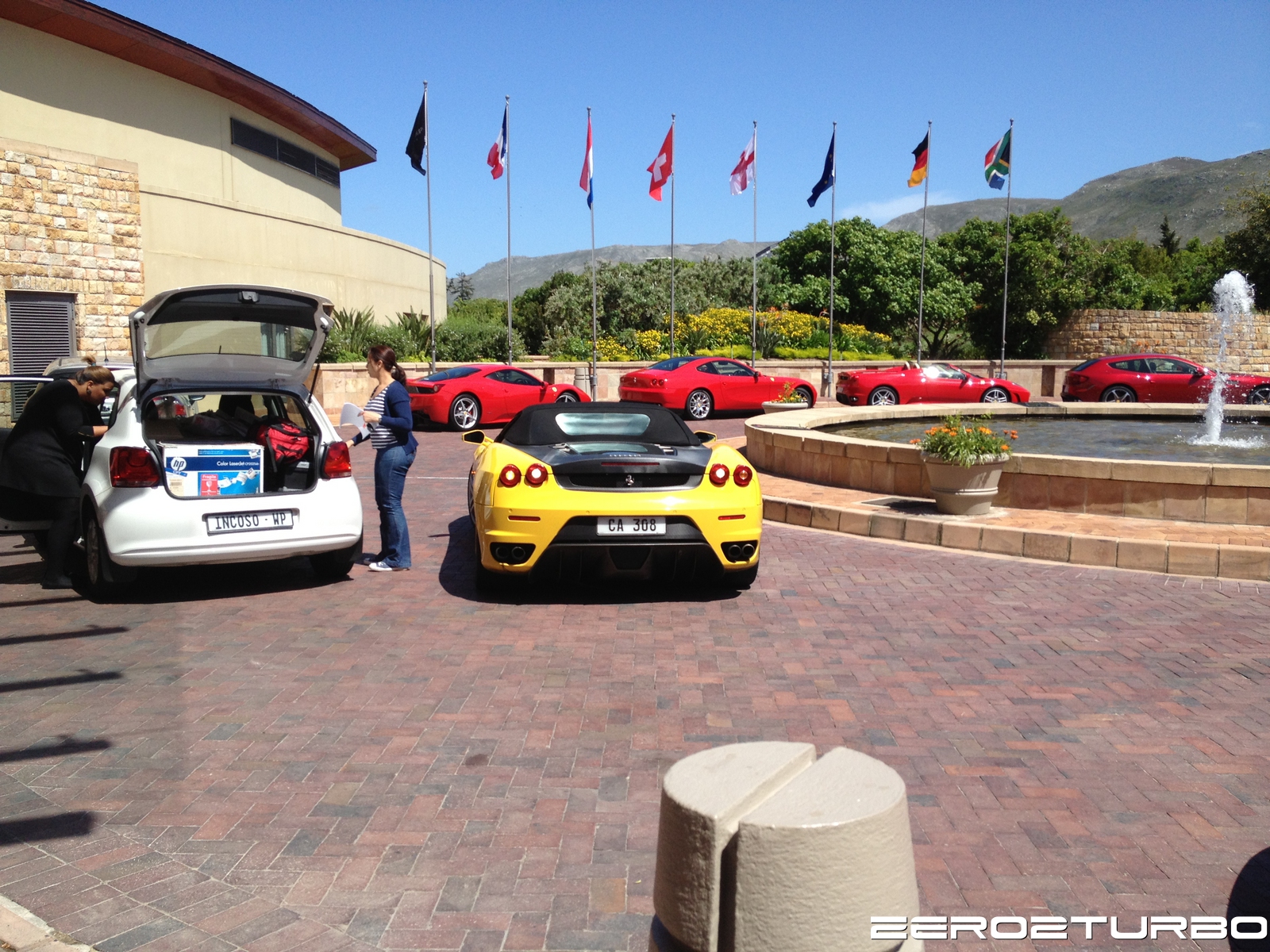 I was lucky enough to spend the weekend at the awesome Arabella hotel near Kleinmond in Cape Town this weekend and with the bleakness setting in of having to check out of the hotel on Sunday I was presented with the most beautiful view. A selection of prancing horses on display at the hotel entrance. It didn’t take long to find out that the Cape Town Ferrari Club had driven from Cape Town to Arabella for breakfast in their stunning pieces of machinery. This was the first time I had seen the FF in ‘the wild’ and with a whole host of them right next to each other, you can imagine just how happy I was! There was even an Aston Martin featuring a #doucheplate. Perfect end to an awesome weekend! Click read more for additional pics!