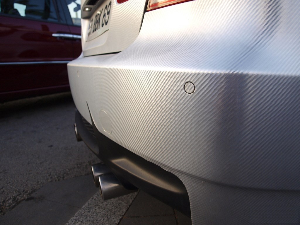We have seen a couple very unique and different M3’s on this blog but this one caught my eye and I dont think for the right reason. We have seen the barbie pink M3, the gold chrome M3 in Durban, the epic matte red M3 and even a matte smurf blue M3. Here we get a matte white wrap with a carbon fibre finish over a majority of the panels, then we get some matte black on a portion of the hood and on the roof and its topped off with electric blue mirrors and grille outlines. I think this is a little to mix and match for me and makes the car look very cheap! You agree or disagree? If it was just in black with the blue accents then that would look epic!