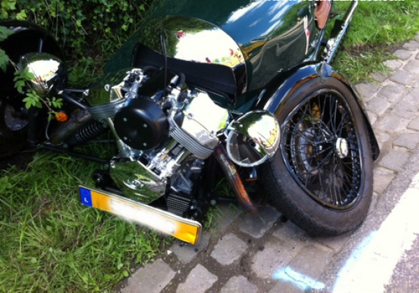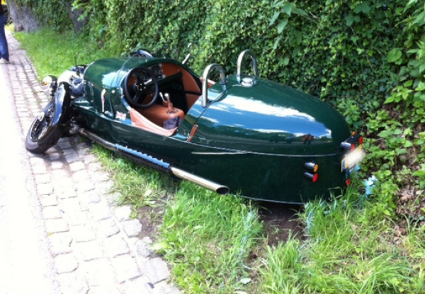 This week we see a rather unusual wreck. It is because the car involved is a Morgan 3 Wheeler. These are rather rare and so we dont see them wrecked. This driver lost control while speeding and ended up hitting an oncoming VW and Morgan. Damage looks relatively small so I wonder where the Morgan hit an oncoming vehicle.