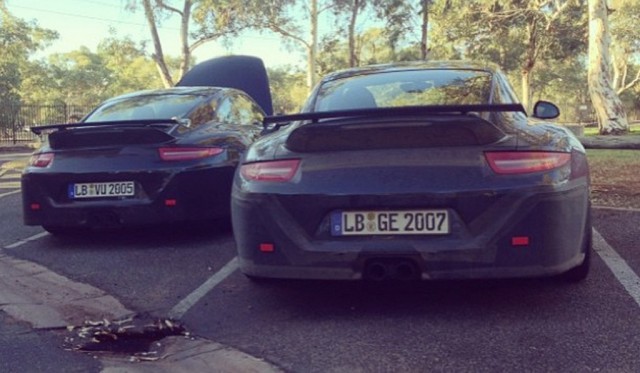 We will see it in all its glory at the 2013 Geneva Motor Show but we get to see a nice new picture of the cars hot-weather testing in Australia. We can see 2 almost completely un-disguised GT3’s and the first thing we notice is the smaller rear wing in comparison to the outgoing model. Looking forward to this release!