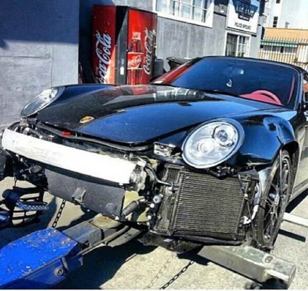 This is the only pic I have managed to find. Chris Brown apparently was trying to escape from paparazzi when he lost control of his Porsche and crashed into a wall. Celebs seem to use the same excuse quite often don’t you think? I think he was just having a little fun in the car and couldn’t handle it.