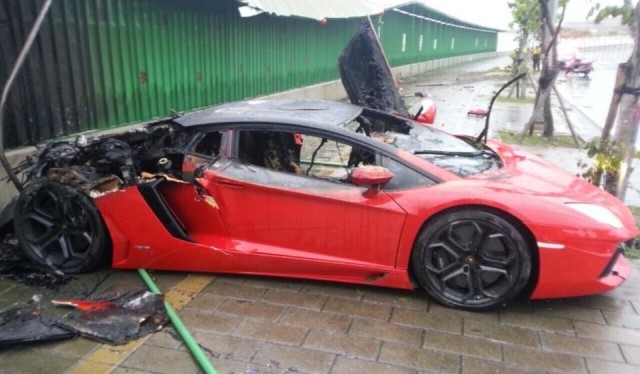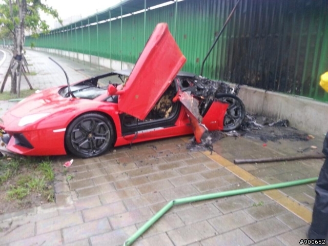This week we see another Aventador’s life come to an end. The accident happened in Taiwan where a wealthy businessman, Ye Maohong, was driving pornstar Peng Xuanrong in his uninsured Lamborghini Aventador. Blame is being placed on the driver after he lost control at high speed and came to rest on some construction fencing and caught alight. Fortunately no one got stuck in the blaze but the pornstar has apparently got a fractured hand.