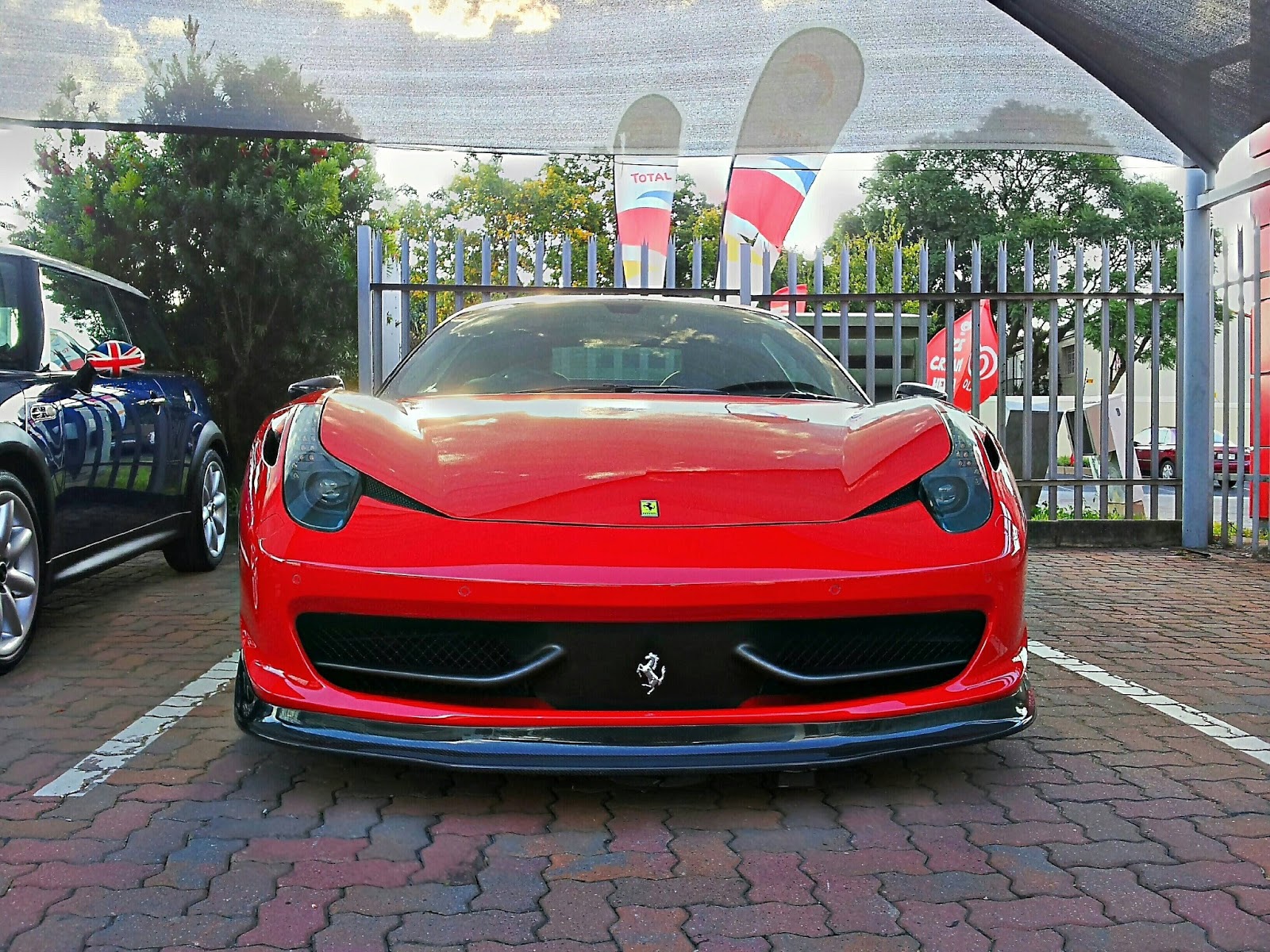 I know we have a lot of beautiful cars running around our country but I was completely shocked when I was sent a picture of this car and quickly realised that it was not the normal 458 Italia but rather loaded with Oakley Design aerodynamic bits and pieces. Production of the full Oakley 458 was originally limited to 5 but has since been increased to 7 due to demand. If you do not go for the Limited Edition, then you can opt for individual parts which can be seen on this beast in South Africa. This car seems to have the following fitted; the epic front lip spoiler, the side vent (front wings), side sills, mirror covers, engine bay side covers, gurney flay rear spoiler, lower rear diffuser, lower engine cover panel and custom black roof. The only reason I am saying that this car does not have the full package is because of the standard 458 Italia wheels but I could be wrong in saying this. It might also have had the ECU remap done which then pumps the power up to 623hp (from 570hp) and the 0 to 100km/h time drops to 3.0 seconds as opposed to 3.4 seconds. So amazing to see a car like this in our beautiful country I just hope one day that I get to see it in action or even better have a ride in it…