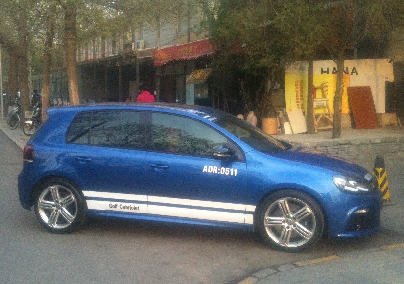 The Golf R looks oh so hot in this blue but someone in China has chosen a sticker that does not suit the car at all and is in fact not made for the car… Hahahah! I am guessing the owner wants the cabriolet or is going to do something drastic to the car so it actually makes sense?