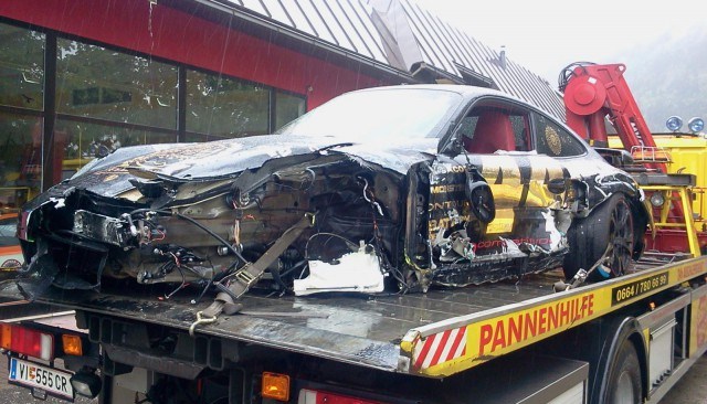 Here we go yet another crash has happened on the rally. This time it is an Edo Competition 997 Porsche with TechArt wheels. This was Team 44 and a tweet from a fellow Gumballer has stated that everyone is OK. Looks like quite the impact as all the airbags have been deployed but one can see that the road is again wet so it was probably taking risks. The other crashes on the 2013 Gumball were Murcielago SV and Ferrari 458.