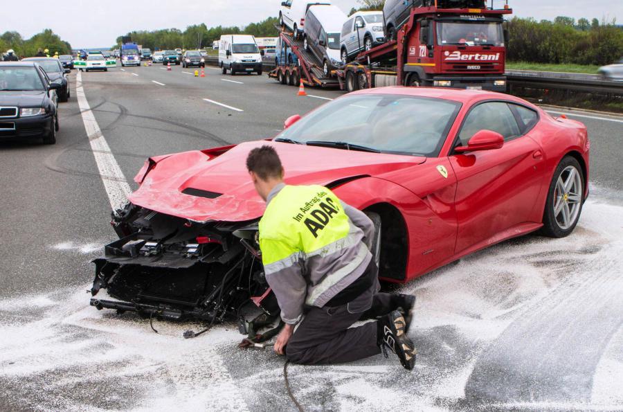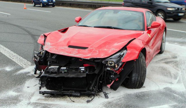 A stunning Ferrari F12 Berlinetta has apparently crashed over the weekend. There were no injuries to the driver or passenger but the same cannot be said about the car. Heavy damage on the front and right rear indicate a loss of control. The accident happened on a section of the Autobahn with no speed restriction. This is the 4th Ferrari F12 accident that I have heard of and this is not surprising considering that all 730hp is sent only to the rear wheels. Sad to see a car in this state but I do not think it will be a total loss…