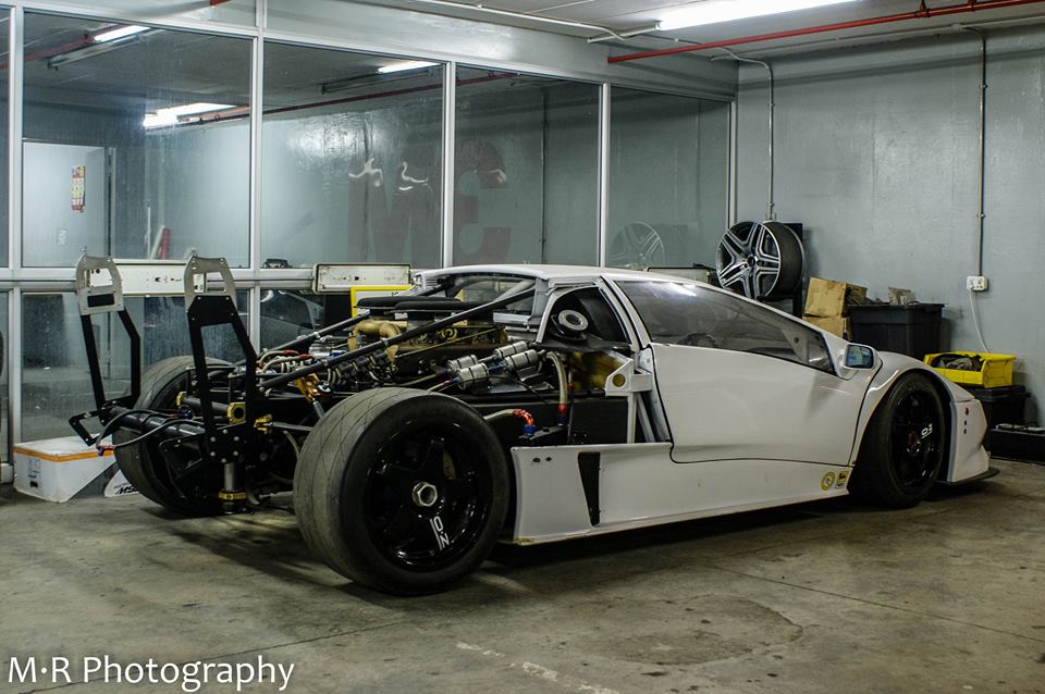 This was spotted in Sandton recently and as far as I can work out, it is a fibreglass body of a Diablo with some AMG engine inside. What stood out for me was the insane OZ Racing wheels on the car and this leads me to believe that it is a car that has been strictly built to race. Even with the back panels removed it looks insane! Apparently these guys build racing cars to customer spec and you can choose what body you would like to put on the car and whoever chose the Diablo is a one smart customer! Would love to see this on the track. To put a big AMG engine in and gearboxes and the works, you would need an engine stand like the ones which can be found at the SGS site.