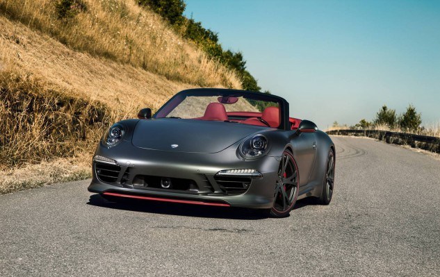 I have always been a big fan of TechArt because their changes and upgrades are not over the top but are certainly noticeable. This has to be the goal of every tuner and aftermarket upgrader in my opinion but hey lets get on to the latest offering of TechArt. This is their take on the Porsche 991 4S Convertible and we can see they have used similar design cues as they did on the regular 991 4S. Front spoiler with integrated splitter, headlight trims, mirror trims, side skirts, rear diffuser, rear spoiler, roof spoiler and the best part of it all, the wheel spacer kit. You can see from the pictures that they have fiddles with the exhaust too and this is certainly true. The new TechArt Racing Exhaust system replaces Porsche’s standard system and immediately makes the car look more aggressive. It has valve control (button fitted in the cabin) so you can decide how loud you want to be and when you want to be. Finishing off the package in style are the Formula 5-spoke alloys which certainly give it a much better stance! I love the look of this thing and would encourage many a 991 Cabriolet owner to consider adding some TechArt bits and pieces.