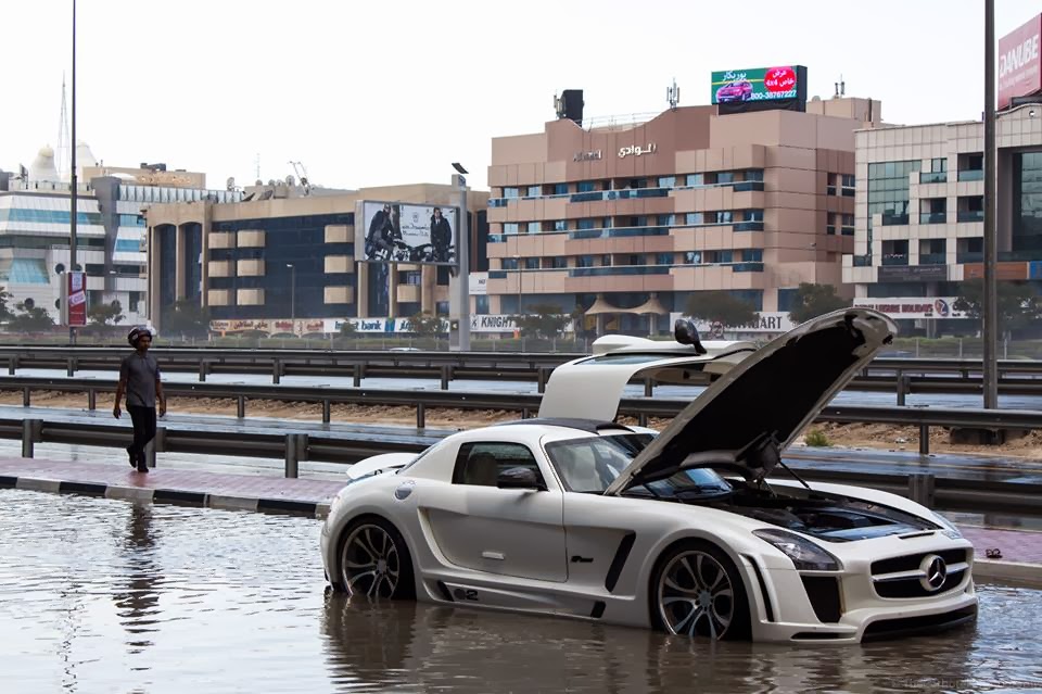 Rain in Dubai is a rather rare occasion but recently they have had plenty of it resulting in some parts of the roads being flooded. The owner of this FAB Design SLS AMG thought they could easily pass through this puddle on the highway but unfortunately the water nabbed something important which caused the car to cut-out. The FAB Design SLS AMG is a tuned version of the popular SLS AMG and with this tuning comes the dramatic lowering of the car thanks to suspension and a serious bodykit. To be honest, I am not sure why a car like this can’t pass through such a small puddle but this owner experienced it.