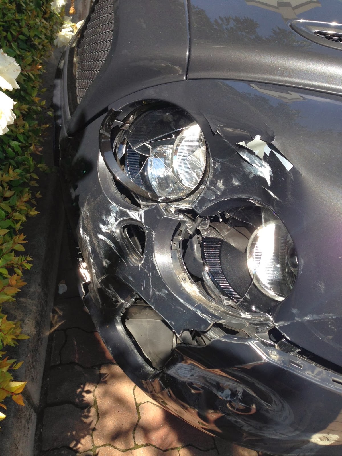 Very few details about this incident are available as a friend sent me the picture. This car is the only Convertible version of the Continental SuperSports in South Africa which sold for close to R5 million. Damage to the front is quite considerable and since the incident the car has not been seen in its normal parking so it is safe to assume that it is having some surgery done. Although the impact has only damaged the front side of the Bentley, this will be a serious repair bill and initial estimates are around R600 000. Ouch!