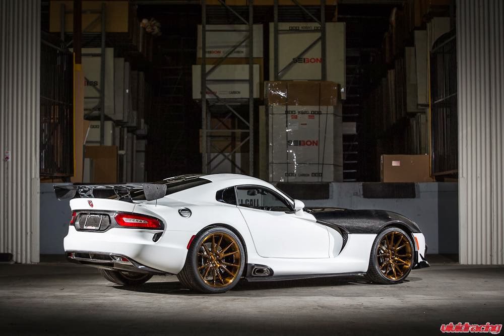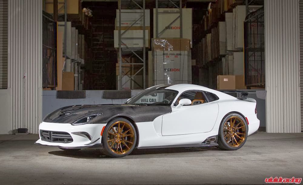 Vivid Racing show off their SRT Viper ahead of the debut at SEMA Motor Show 2013 and as you can see they make a lot of use of carbon. The ventilated hood in my opinion completely ruins the car but the front lip spoiler, side skirts, diffuser and rear wing all look epic and are of course in carbon. Power wise they have fitted an Agency Power ait intake and a new exhaust system but have not released any performance figures yet. If that bonnet was white, this car would look completely epic!