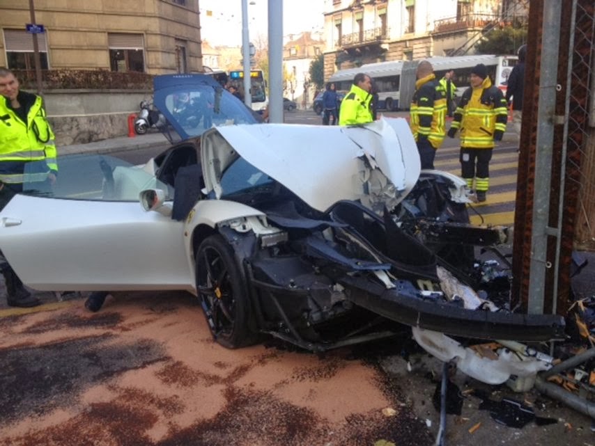 Just this morning I shared a Ferrari 458 Italia crash with you from China and now the second Ferrari 458 Italia within 24 hours has been crashed. The front of this stunning white Ferrari 458 Italia has been smashed to pieces this morning after the driver lost control of his prancing horse and crashed into the University Medical Center. Witnesses said the car approached at very high speed narrowly missing a person on the sidewalk and then performing aggressive accelerations when things went wrong. The driver was said to be very young and showing off when this incident happened. Although there was an ambulance present, not much is known as to the condition of the occupant(s) but looking at the crash I would think there would have been some injuries due to the severity of damage. Although damage is isolated to the front section, I would think this Italia will end up being used for spare parts and never see the light of day again.