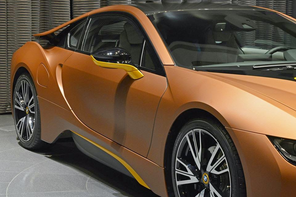 Once again BMW Abu Dhabi share another special BMW i8 with us but this one doesn’t do it for me. This car is wrapped in a copper matte wrap and paired with yellow accents on the hood, kidney grille, side mirrors and rear bumper. I think this is one of those you love it or hate it and you know where I stand on it.