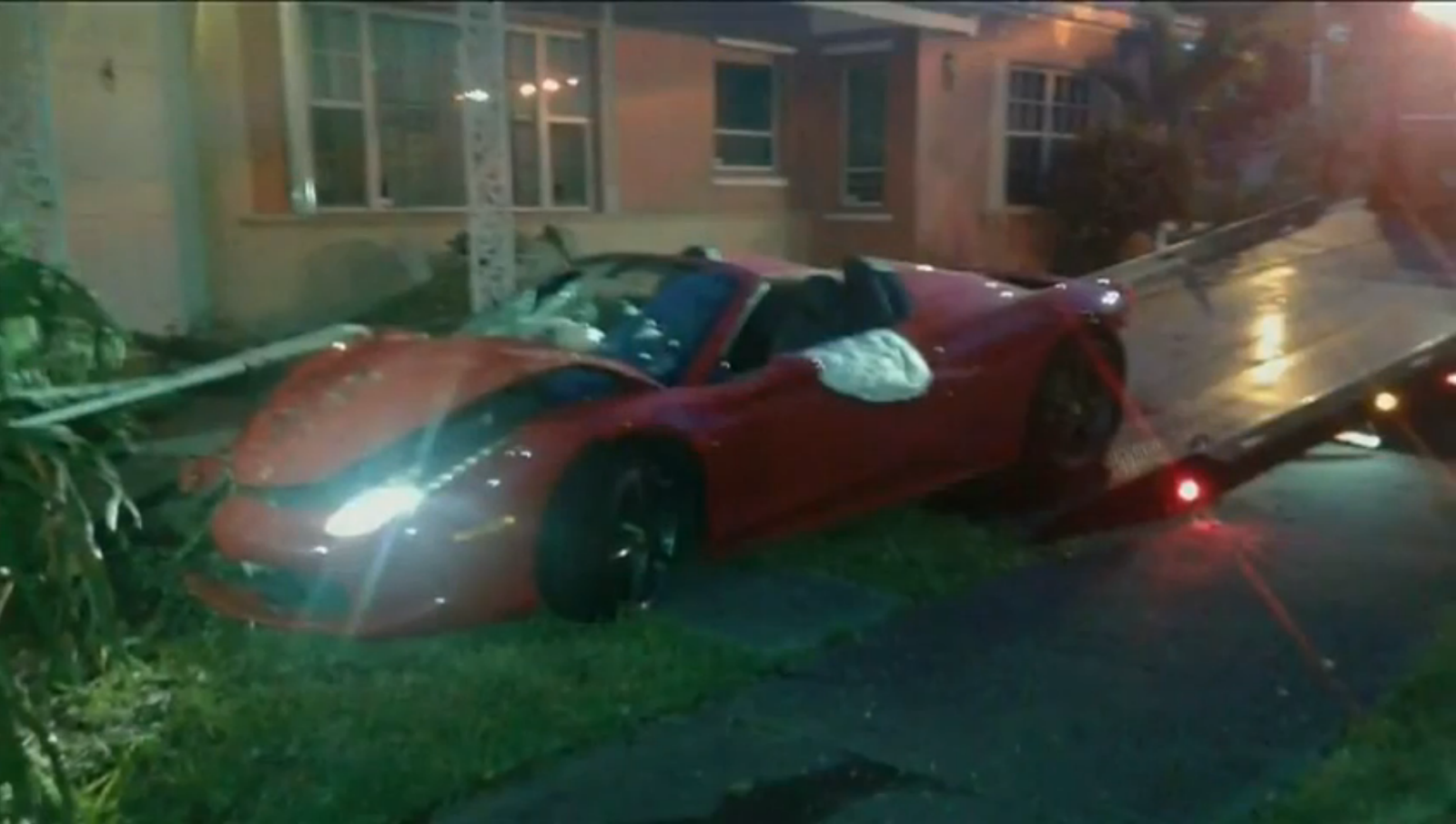 A Ferrari 458 Spider has been completely destroyed in Miami after the owner lost control on wet roads early in the morning (5am) on Tuesday. The car hit the grass verge on the side of the road and then crashed into the garden railings of a house. Although the driver of the car had to crawl from the car, he did speak to police at the scene. Could be alcohol involved in this one but I won’t make any assumptions! Just glad no one was hurt (except for the homeowners fence).