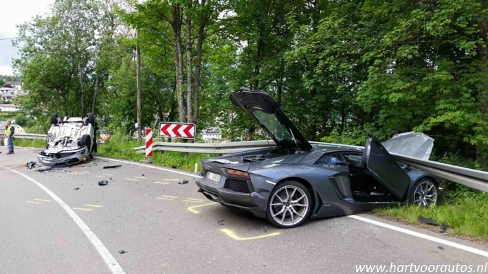 If you have just taken delivery of an epic Lamborghini Aventador, you will probably want to take it through a beautiful mountain road but you will need to be careful when behind the wheel of a 700 horsepower beast as this owner in Germany found out. According to Hartvoorautos, the driver overtook a BMW around a bend when the driver saw on oncoming Opel Corsa. Driver attempted to avoid the collirsion but ended up colliding with the BMW and the Opel causing it to roll. The 32-year-old driver of the Opel had to be freed by the fire department and was transported to hospital with serious injuries. The driver (54-year-old) and passenger of the Aventador were also seriously injured and taken to hospital. Please be careful when driving ANY type of car never mind a 700 hp raging bull.