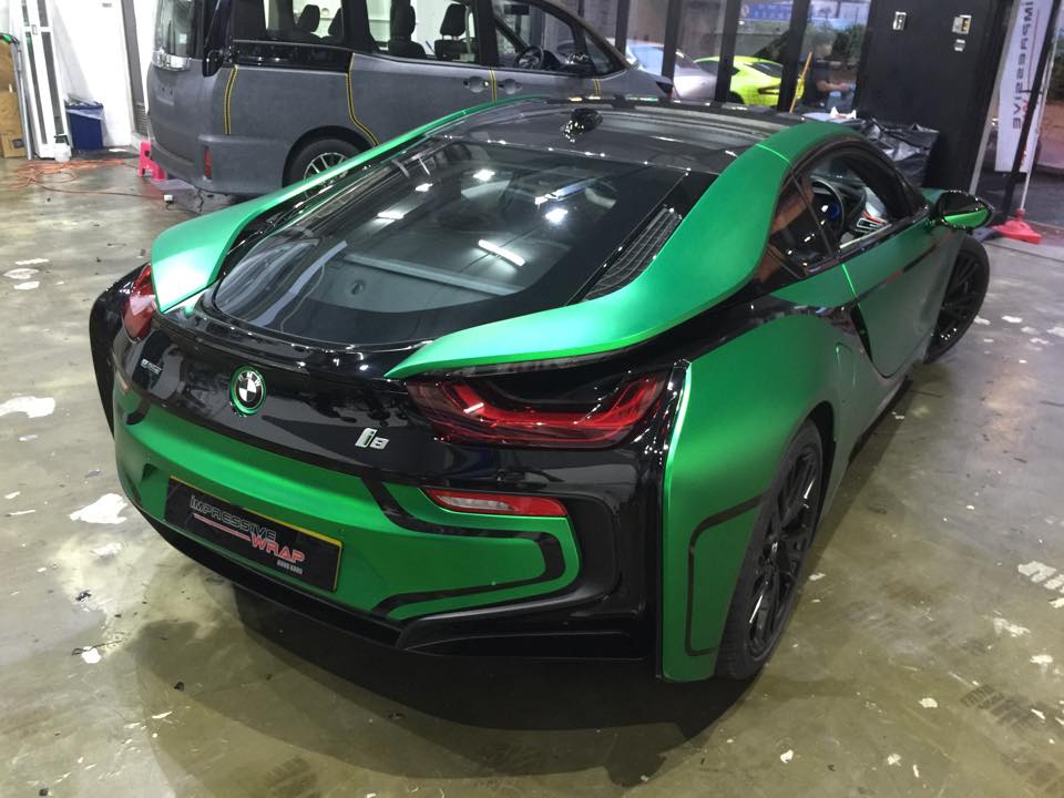 Impressive Wrap Hong Kong have created some of the boldest wraps for some of the most mind-boggling cars but their latest project has to be the most unique BMW i8 I have ever seen. It is called matte green chrome and although this is a bit of an oxymoron, you can see both elements present on the wrap. Going a bit further, they also applied gloss black to a number of elements such as the bonnet, bumper, roof and window frames. It may be a tad over done but for some reason I really like it!
