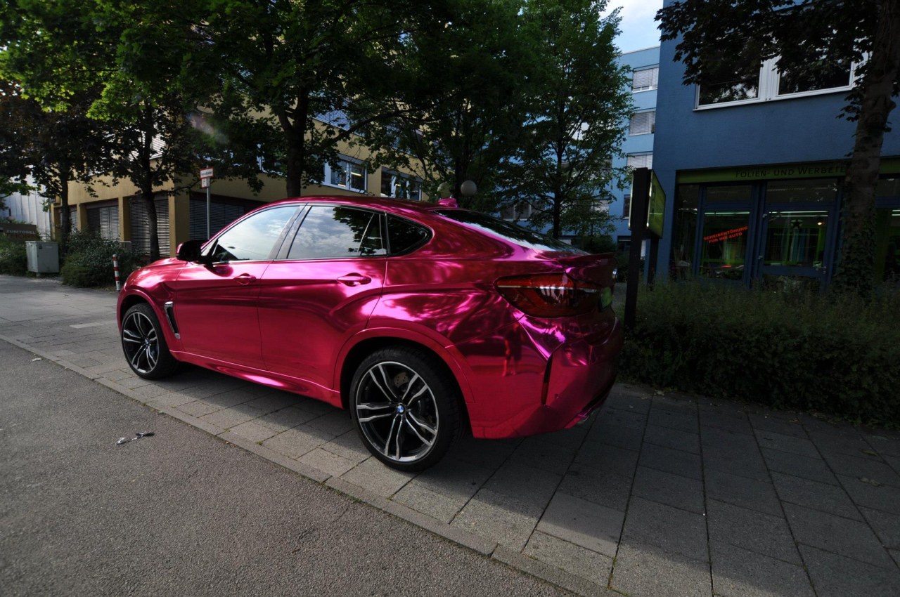 If you have just bought a beastly 575 horsepower X6 M why would you then go and do this? Chrome wraps are something of the past in a way but a pink one on a brand new BMW M car is a sin! I know there will be a few of you out there who thinks this is actually quite cool but I have just had the X6 M on test and it does not deserve to look like this.