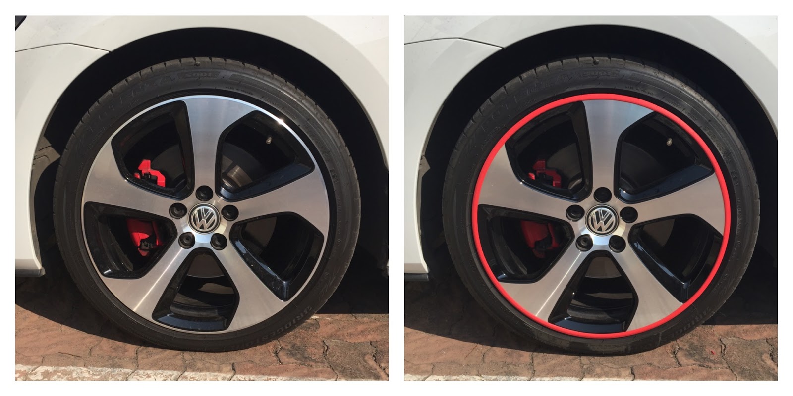 Recently I had a set of red RimSkins fitted to my car to prevent a nasty scratch on the beautiful diamond cut wheels but also to give the car a bit of character. Warren from RimSkins personally came out to install the product and I am extremely happy with the result. If you want to do it yourself, you can simply order a kit from their website here and away you go. The kit comes with everything you need and you can choose from grey, black, red, yellow, white or blue. Some rims are designed in such a way that the product can not be applied but majority of the standard wheels work perfectly. Pricing ranges from R549.00 (DIY) to R1399.00 (professionally done). Check out the gallery of installs at this link for a better idea of how they could look on your car.