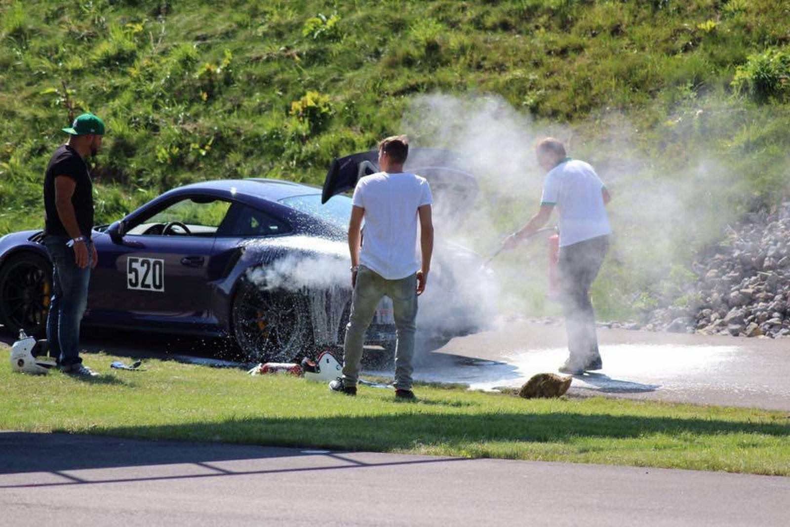I recently came across some images on Instagram of an Ultraviolet Porsche 911 GT3 RS that had caught fire but now we have some clearer pics to share. Not much is known why the car caught fire but by the looks of things, they were able to save the car with three fire extinguishers. It might have been an electrical short but let’s hope it is a single case and not a trend with the beautiful new German machine.