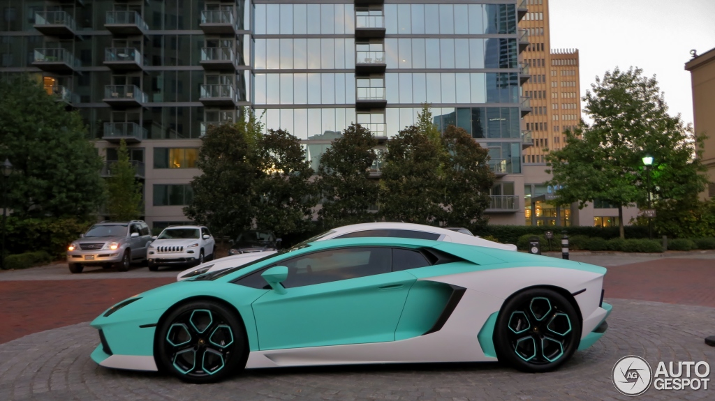 Since the Lamborghini Aventador was introduced in 2011, we have seen hundreds of awesome paint jobs and wraps to keep things interesting but this ‘two-tone’ example spotted in the US of A is among the most unique out there. The car looks to have been wrapped in a fresh minty green colour and then had some panels wrapped white as a contrast. It is very different but I think it is different in a good way. I just love the green detailing on the gloss black wheels too. What do you all think?