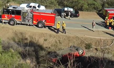 “Ferrari 360 Modena slides then rolls down a steep hillside. Driver and passenger were mostly uninjured. I generally shoot motorcycles but when I heard the Ferrari coming I lifted my camera just as he started to slide. I cut the vid short to protect the privacy of the driver and passenger. The passenger was already standing as I came around the car, he appeared uninjured. He said his father was still in the car. His father crawled out shortly after. Neither went with EMS.” – taken from YouTube description