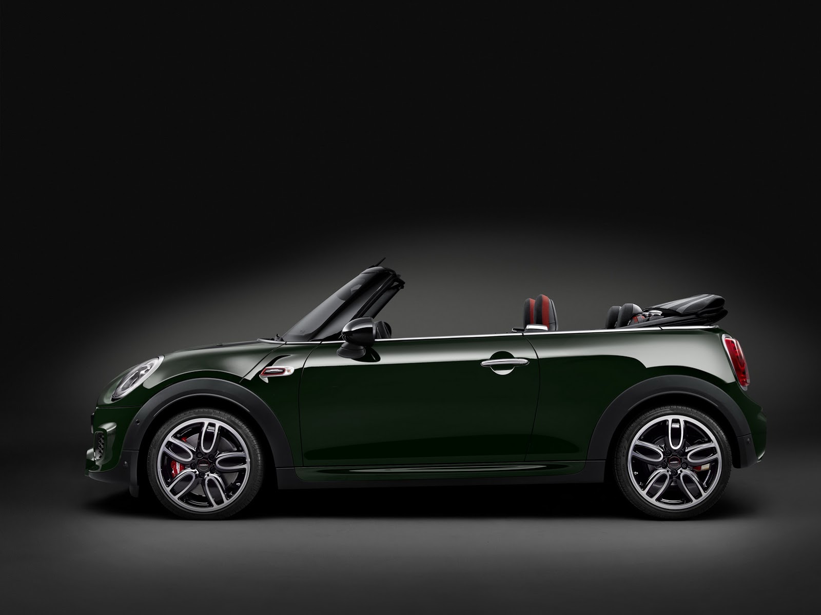 MINI has just finished up the new Convertible lineup with the hotted-up John Cooper Works version. As you would expect, it borrows its goods from the JCW hardtop hatch that was launched last year, including its B58 2.0-litre turbo charged engine with 228hp. As a reminder, this is an increase of 20hp over its predecessor, but more importantly it is also 135kg heavier. 0 to 100 km/h comes up in 6.6 seconds if you opt for the manual and 6.5 seconds if you for the 6-speed auto. You get the same dual pipe sports exhaust, re-tuned suspension, 17-inch/18-inch rims, and a series of cosmetic exterior upgrades such as the model-specific bumpers with enlarged ducts, LED headlamps, spoilers, red brake calipers and wider sills.