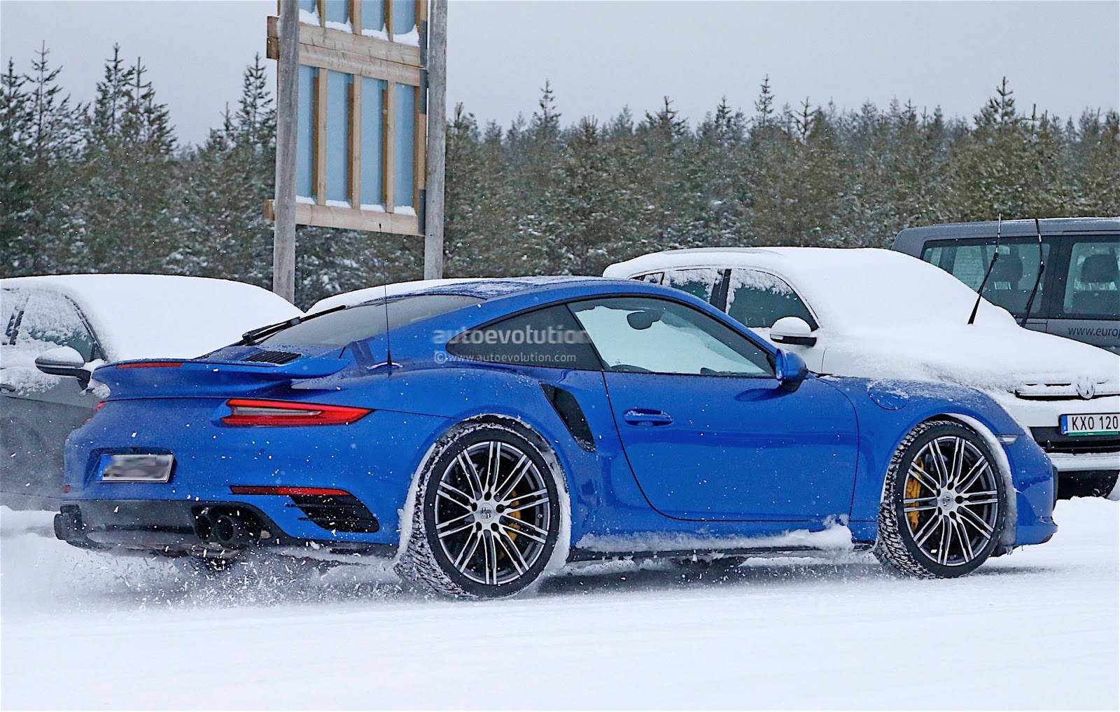 So it seems the team over at CarPix/AutoEvolution have spotted the new 991 generation Porsche GT2 doing some winter testing and the car does not feature any camouflage. How do they know it is something different? Well just look at those oversized exhaust pipes! As you would expect, the model is based on the 911 Turbo with aerodynamic kit but it differs thanks to the black hood and large exhaust pipes. This is a spot of the mule and not the actual car but it is a safe assumption to say that this car, when completed, will be an animal! We can expect it to feature more aerodynamic elements like a big rear wing, along with an enhanced front spoiler. For now, it is unclear whether the 2017 911 GT2 will be available with a manual gearbox as well, but the lightning-fast PDK twin-clutch gearbox is expected to be available with this version. Power wise, we can expect the GT2 to deliver something close to the 700 hp mark which will put this right back into the widow-maker category!