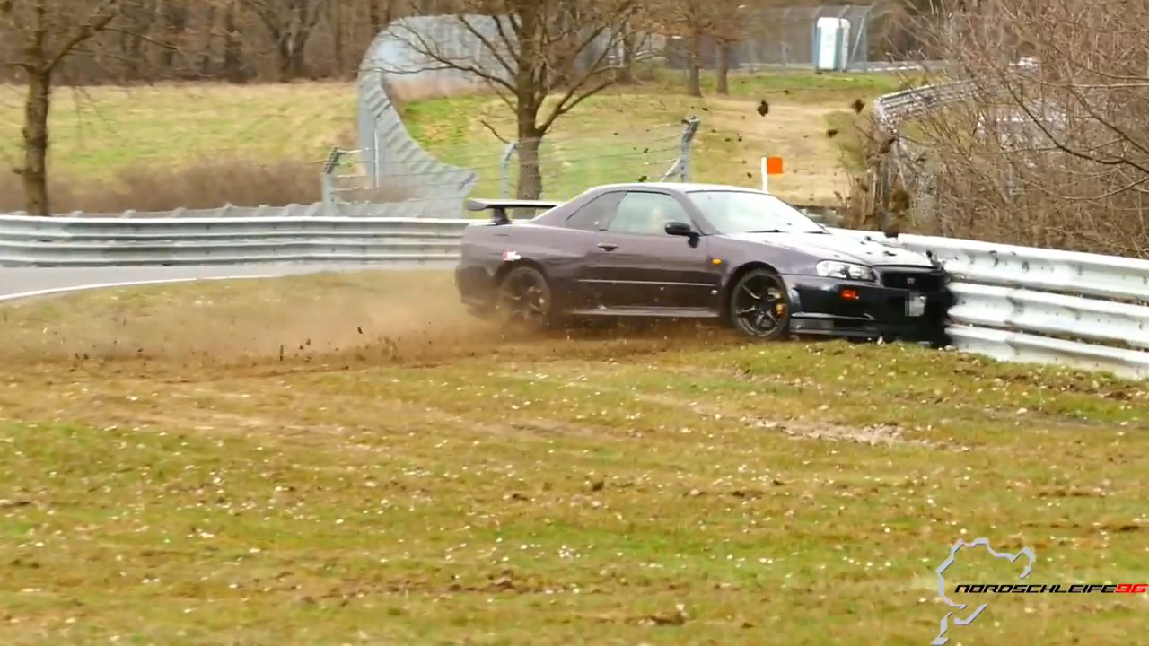 Most of us respect and love the Nissan Nissan GT-R R34 as its an amazing drivers car and a modern day classic. If you are a fan of the R34 V-Spec then you might want to turn away as a pristine example was caught having some cosmetic surgery done by the barriers on the Nurburgring. Damage does not look too severe so this car should be fixed up and hopefully back on the roads on soon!