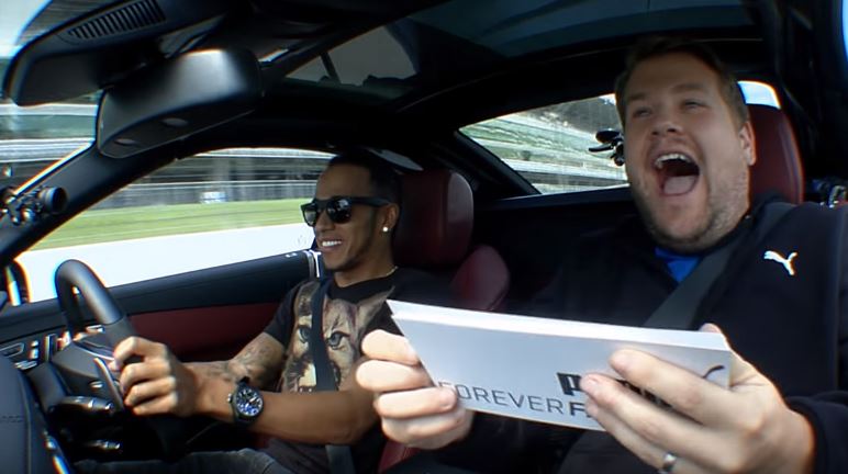 James Corden Interviews Lewis Hamilton While He Drives SL63 AMG Like A Maniac
