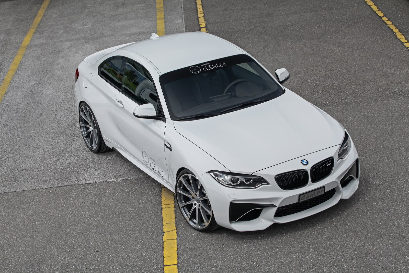 The tune includes some lowered and adjustable coil-over suspension, a high-performance 8-piston brake system with 400mm disks, and a stainless steel exhaust system, all developed and produced in-house by Dähler. The only exterior changes made to the car are the black- trimmed bumper and side vents, plus the optionally available front lip spoiler, rear wing and 20-inch staggered wheels. Dähler has yet to release pricing on any of the tuning programs it offers for the M2 Coupe.