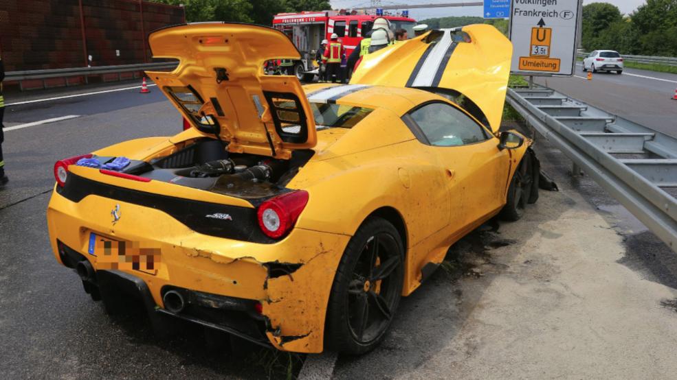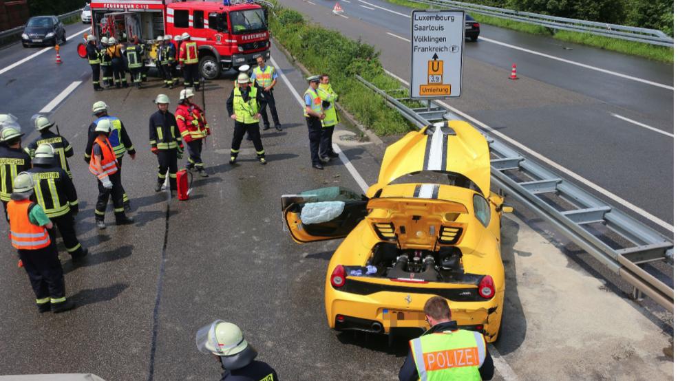 The 65 year old driver from Luxembourg lost control of his precious machine near Quierschied (Germany) which resulted in the car slamming into the guardrail, spinning back out into the road and then come to rest against the barrier again. The roads were wet and it could be another case of ‘ran out of talent’ but we do not know the full story to make assumptions like that. Driver was not injured from the crash but his passenger did sustain minor injuries. A piece of the the barrier flew into the windshield of an oncoming car which slightly injured the occupant of the car.