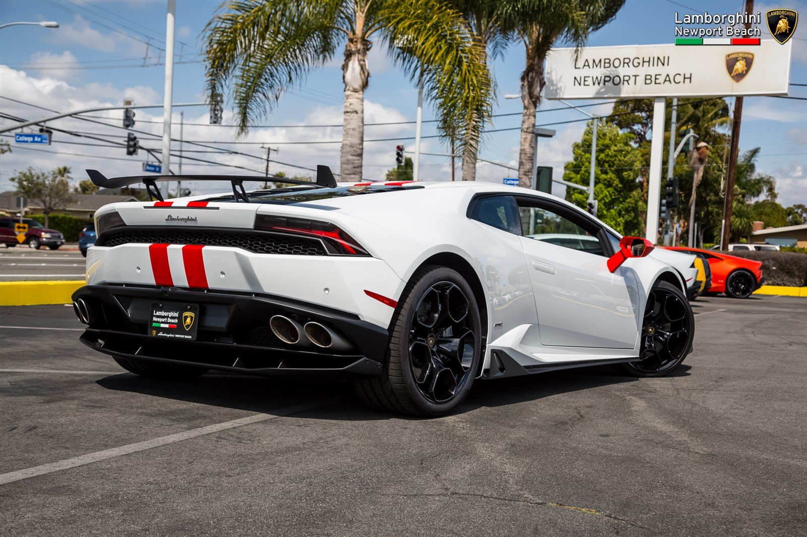 Back in May we saw a computer generated image of a Huracan wearing an OEM bodykit. Well now we have the first shots of the kit on a car and it looks absolutely epic! The kit will cost you $22,500 and it includes a new bumper-grabbing front lip, side skirts, a hefty rear diffuser extension, and a rear wing, which might please true Lamborghini aficionados, as it’s reminiscent of a bull’s horns. This particular vehicle sits at Lamborghini Newport Beach and it is fully spec’d with some of Lamborghini’s latest accessories and options available for the baby-bull. It comes with the Track Telemetry Package, full Exterior aero package (as mentioned) and some very striking red graphics from front to back. List price on this particular car is $299,888 which is hefty in the states.