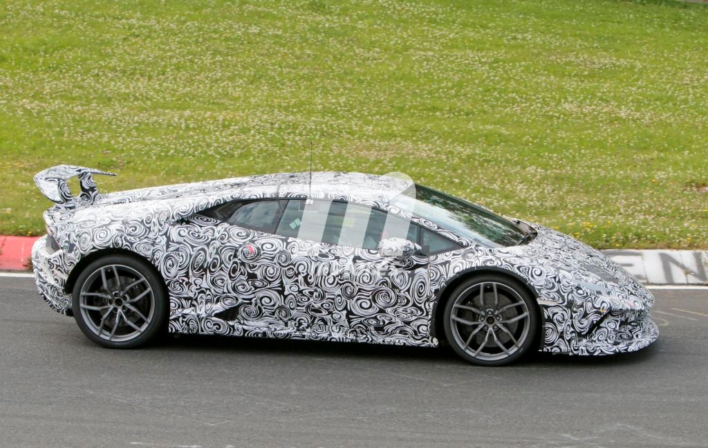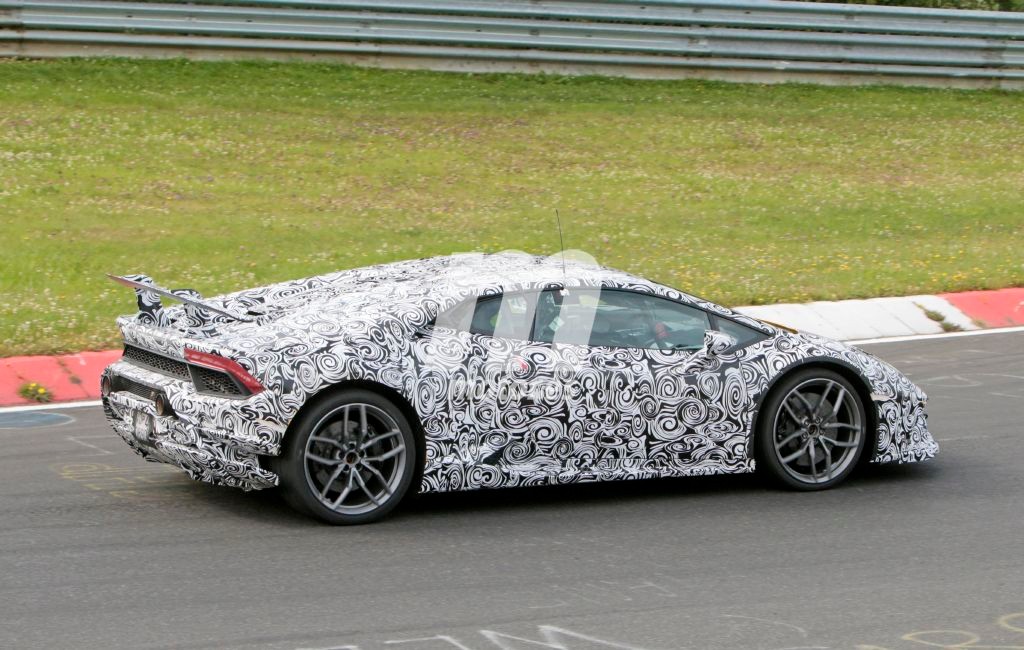 These spy shots show the supercar thrashing it around the Nurburgring Nordschleife and even with the camo it looks a hell of a lot more angry than the ‘normal’ Huracan. That large rear wing, bigger air intakes in front of the rear fenders, the raised positioning of the tailpipes and the extra appendages on the front bumper really do turn it into something properly menacing! This version will likely get a power bump too and word on the street is a 50hp gain to hit the 650 horsepower mark. This car will be properly rapid and will very likely demolish the Aventador and even the SV in a drag race thanks to some serious weight loss (apparently 100kg).