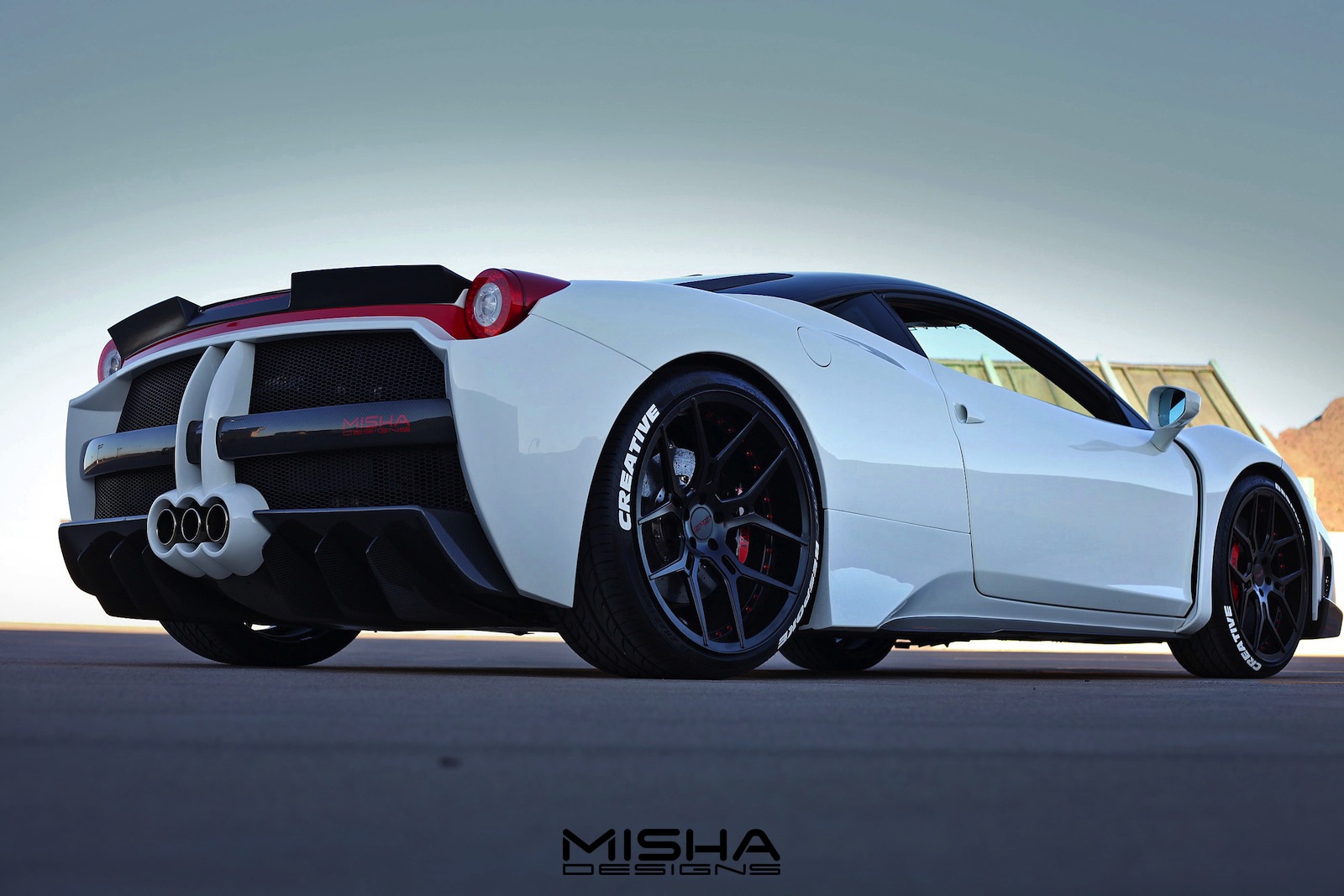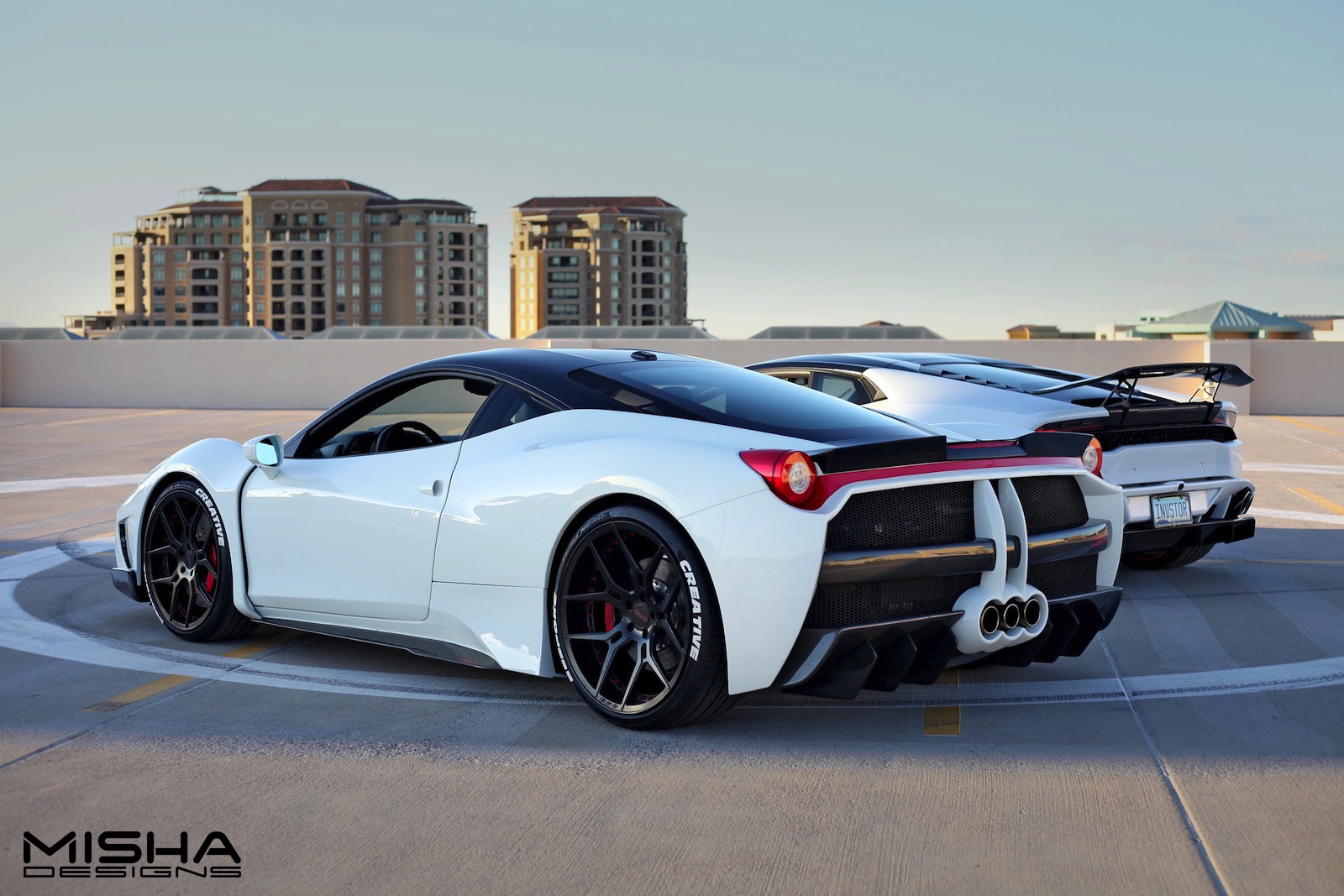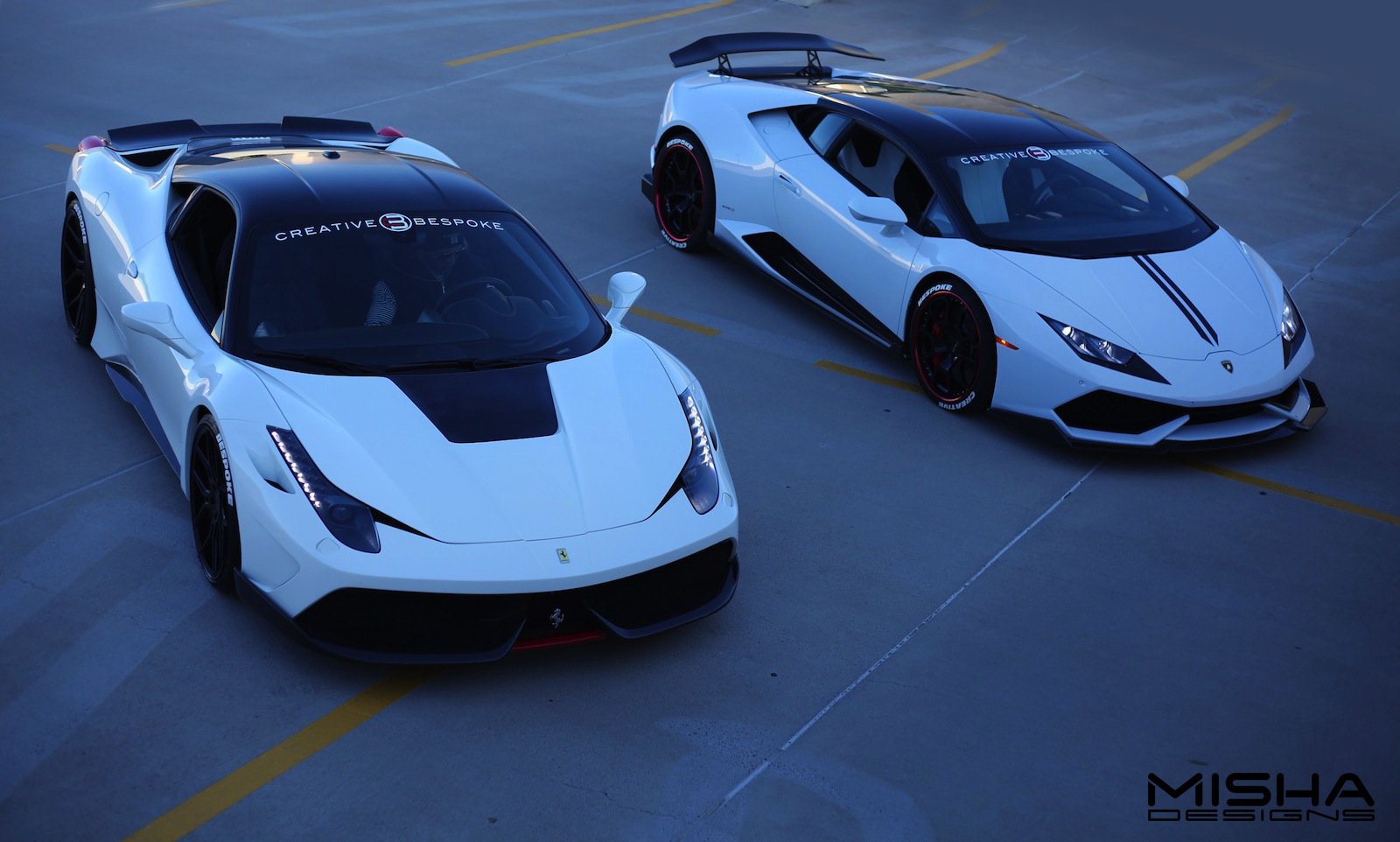 Misha Designs have taken the cosmetic look of the stock 458 Italia and Lambo Huracan and fattened them up with a wide-body kit. This is their carbon fibre kit which consists of a new hood, front spoiler, fenders, side skirts, rear wing, rear spoiler and diffuser. They then fitted some 21″ Giovanna wheels to really wrap up the serious surgery on the Italian car. Are they overdone or spot on for you and which one would you choose?