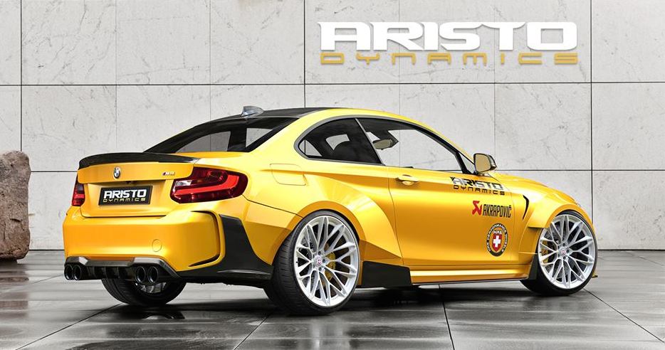 Just the other day we saw a preview of PSM Dynamic’s BMW M2 package which was a very big thumbs up for most but today we see a preview of a wide body kit from Aristo Dynamics and if I am brutally honest it is a BIG miss. The little M2 in standard form has a very wide rear-end so adding even more to that seems a little unnecessary. Yes these are renders so we will wait to give our final verdict but it is not looking too promising at the moment. The kit changes almost everything with a new front bumper, side skirts, fenders and even rear bumper finish it off with the boot lid spoiler and the HRE P200 wheels and you have a rather unique / ugly BMW M2.