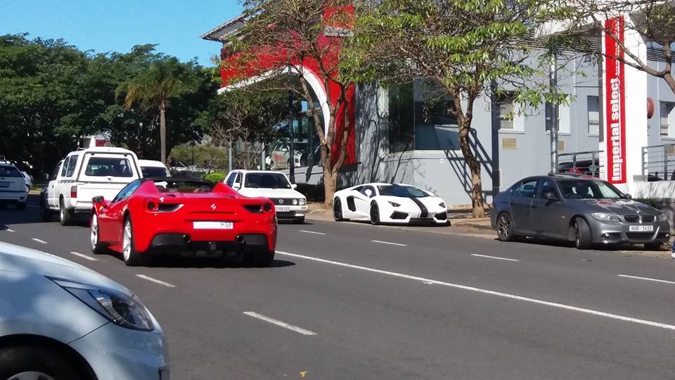 This week packs some of the most insane machines currently in our country. Highlights (which are hard to choose) are: 458 SpecialeA, Challenger Hellcat, R8 V10+, white Ferrari F12tdf, Huracan with aero kit, G63 6×6, Aston Martin GT12 and this awesomely timed photo of a brand new 488 Spider and Aventador in Umhlanga.