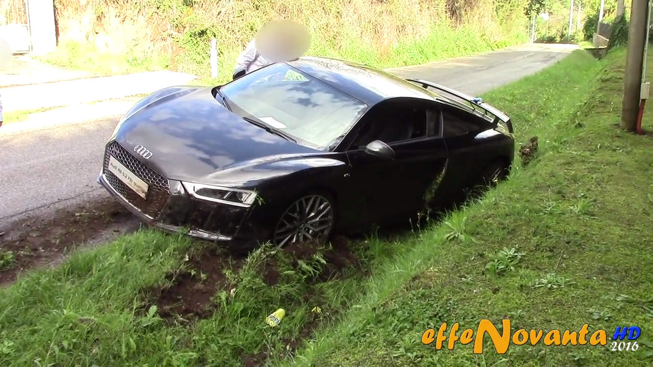 Cars and Coffee should be a nice calm car meet but after the Mustang crashed last week and now a brand new Audi R8 V10 Plus in Italy, it seems like driver’s are using the opportunity to either showboat or simply don’t know how to handle their powerful supercars. The new mid-engined supercar found itself stuck in ditch on the side of the road with damage that does not seem too bad but you can bet the driver has one very bruised ego.