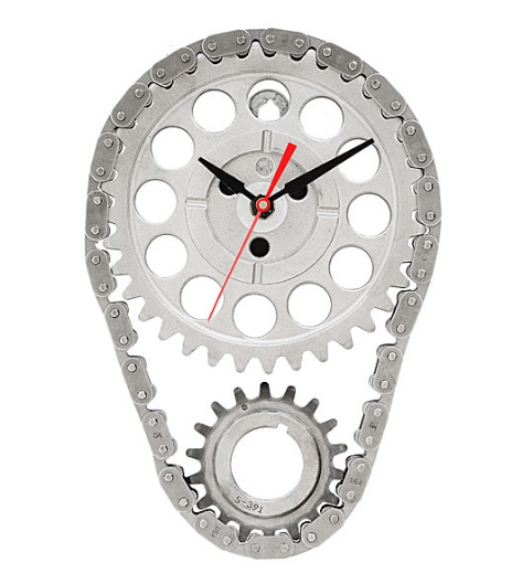 Have a loved one that loves working on cars? Help him decorate his interior space with this cool gears and wall clock. It is made out of an engine timing gear and chains, making it the perfect accessory for a garage, but its design makes it classy enough to hang in a living room.