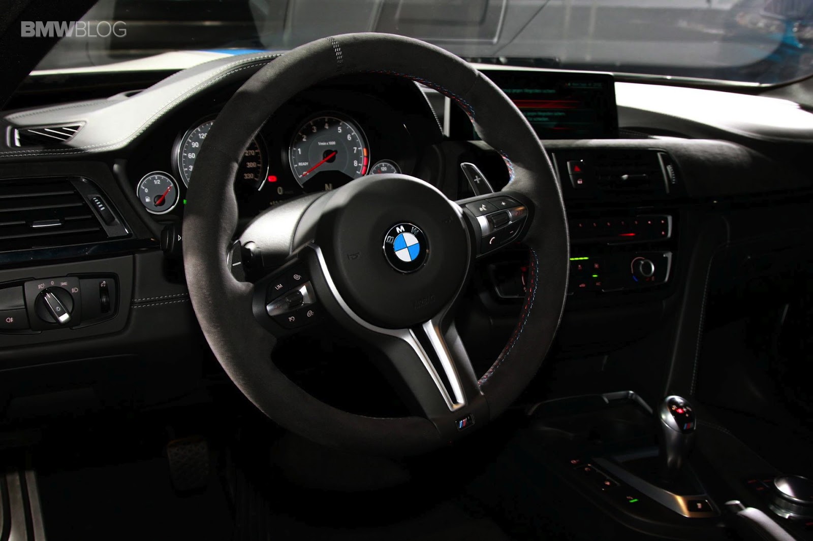 - Driver and passenfer sit in M Carbon bucket seats covered in Alcantara/Leather Merino