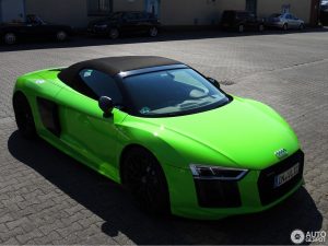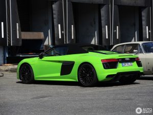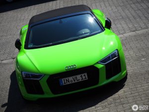 We know the Lamborghini Huracan and the new R8 share plenty DNA but what if you wanted a striking Lamborghini green hue on your new drop-top German supercar?